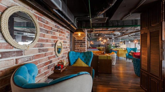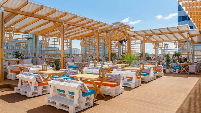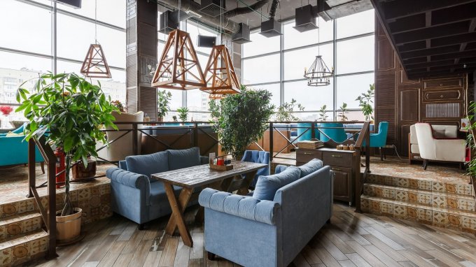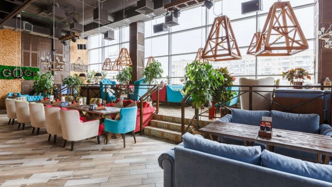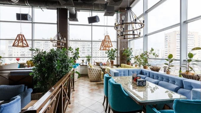 Современный ресторан с разнообразной кухней и террасой с видом на город